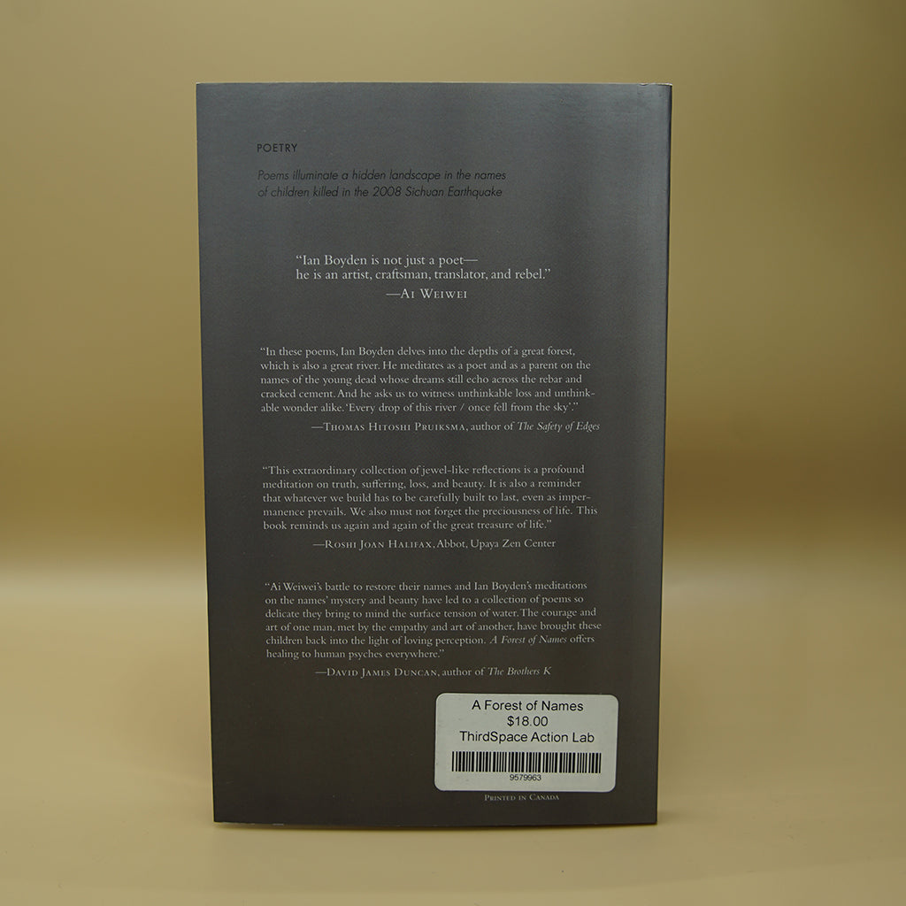 How do we honor the dead? How do we commit them to memory? And how do we come to terms with the way they died? To start, we can name them. When schools collapsed in an earthquake in China, burying over 5,000 children, the government brutally prevented parents from learning who had died. Artist Ai Weiwei, at risk to his own safety, gathered the names of these children, and their names are the subject of this book. Each poem is a poetic meditation on the image and concept suggested by the etymology in the Chinese characters. This act of poetic translation is both a heartbreaking tribute to people whose names have been erased, and a healing meditation on how language suggests a path forward.