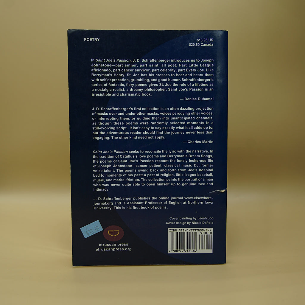 In the tradition of Catullus' love poems and John Berryman's Dream Songs, the poems of Saint Joe's Passion recount the lonely lecherous life of Joseph Johnstone-cancer patient, classical music DJ, former voice-talent. The poems swing back and forth from Joe's hospital bed to moments of his past: a past of religion, little league baseball, music, and marital friction. The collection paints the portrait of a man who was never quite able to open himself up to genuine love and intimacy.